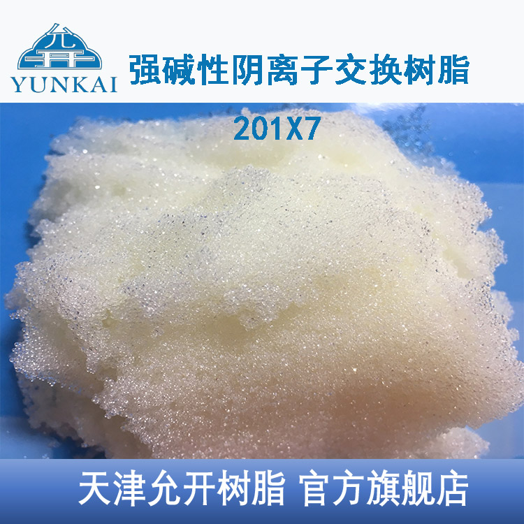 201×7強堿性陰離子交換樹脂是在苯乙烯二乙烯苯交聯共聚物基體上引入季銨基[-N(CH3)3OH]的離子交換樹脂。其堿性相當于強堿。具有機械強度好、耐熱性能高等特點。